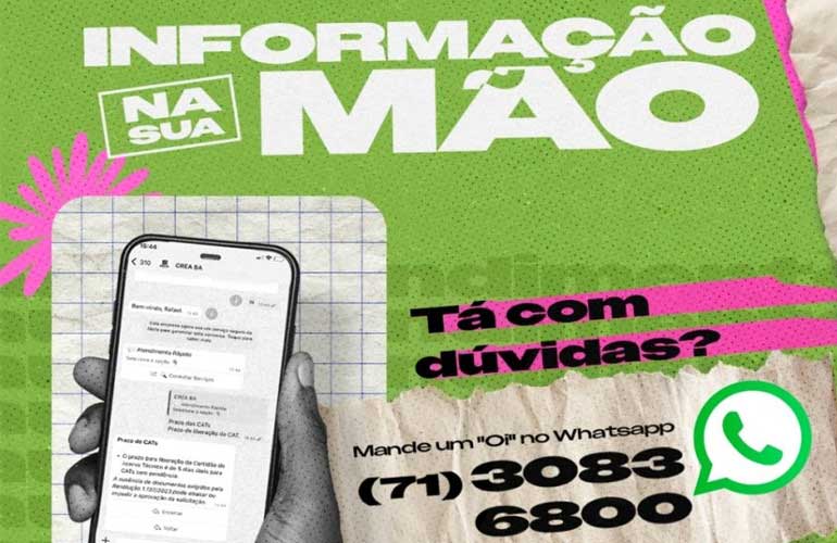 Inovação e tecnologia estão cada vez mais presentes em nosso dia a dia, e o Conselho Regional de Engenharia e Agronomia da Bahia (Crea-BA) se mantém atualizado. Diante disso, o Conselho desenvolveu uma nova ferramenta no WhatsApp para facilitar o atendimento ao público através do número (71) 3083-6800, garantindo mais agilidade e menos tempo nas […]