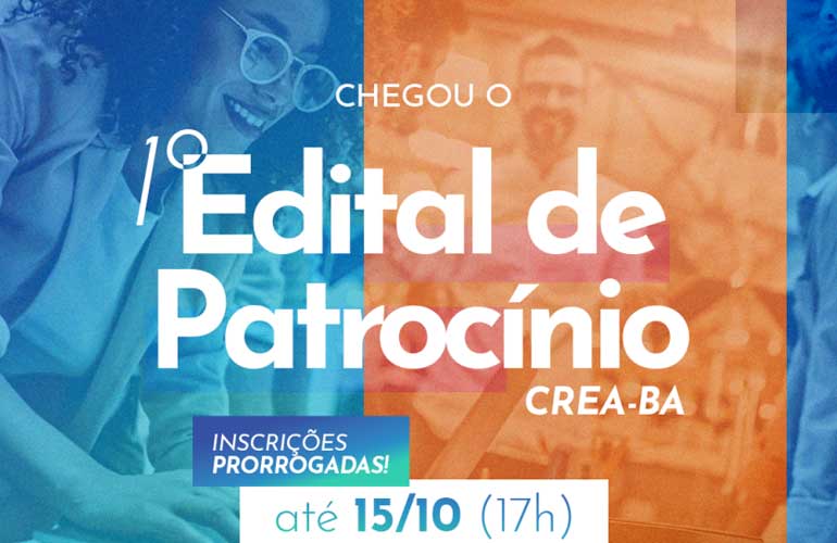 As inscrições de projetos a serem patrocinados pelo Conselho Regional de Engenharia e Agronomia da Bahia foram prorrogadas até o dia 15 de outubro. O edital de patrocínio, divulgado no dia 09 de setembro (leia aqui) é o primeiro do Conselho, voltado às ações alinhadas à missão e aos valores do Conselho, como o fortalecimento […]